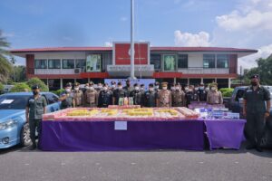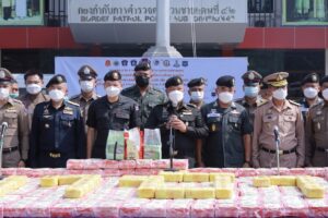 สำหรับผลการจับกุมดังกล่าว สืบเนื่องจากเจ้าหน้าที่สามารถจับกุมนายอรรถนพ (ต้ะ) สุขสงวน พร้อมของกลางยาบ้าจำนวน 30 เม็ด ในพื้นที่อำเภอฉวาง จังหวัดนครศรีธรรมราช และได้ทำการขยายผลจนสามารถจับกุมยาเสพติด ยาบ้าได้เพิ่มเติมอีกจำนวน 100,000 เม็ด ในพื้นที่จังหวัดพัทลุง ซึ่งเกิดอุบัติเหตุพลิกคว่ำขณะนำยาเสพติด (ยาบ้า)ไปส่งให้ลูกค้า ประกอบกับเมื่อวันที่ 30 มีนาคม 2565 ได้จับกุมตัวนายประเสริฐ เสนา พร้อมของกลางยาเสพติด (ไอซ์) จำนวน 300 กิโลกรัม ที่ บริเวณด่านตรวจความมั่นคงควนมีด อำเภอจะนะ จังหวัดสงขลา ขณะลำเลียงลงสู่พื้นที่จังหวัดชายแดนภาคใต้ เจ้าหน้าที่จึงได้ร่วมกันขยายผลต่อเนื่องจนทราบว่าขบวนการค้ายาบ้าและยาไอซ์ดังกล่าวเป็นเครือข่ายของนายพรชัย ยอดอินทร์ (บ่าวสิชล) ซึ่งเป็นขบวนการค้ายาข้ามชาติ ซึ่งนายพรชัย (บ่าวสิชล) จะมีหน้าที่ลำเลียงยาลงสู่พื่นที่จังหวัดชายแดนภาคใต้ เพื่อส่งต่อไปยังประเทศเพื่อนบ้าน มีนายปวิช (ปอ) ธีรสุทธิ์ เป็นผู้สั่งการ และได้สืบสวนจนทราบว่ามีการนำยามาเก็บไว้ในพื้นที่อำเภอพระแสง จังหวัดสุราษฎร์ธานี กระทั่งเมื่อวันที่ 6 พฤษภาคม 2565 เจ้าหน้าที่ได้ล่อซื้อยาบ้าจากนายเทพศักดิ์ นนทฤทธิ์ (ชาย) จำนวน 6,000 เม็ด จึงได้ทำการจับกุม และขยายผลตรวจค้นบ้านเช่าของนายเทพศักดิ์ฯ ณ บ้านเลขที่ 183/1 ตำบลอิปัน อำเภอพระแสง จังหวัดสุราษฎร์ธานี ได้ยาบ้า 48,000 เม็ด สรุปรวม 54,000 เม็ด และในวันที่ 7 พฤษภาคม 2565 ได้ขยายผลจับกุม นายเกียรติพงษ์ ปานรินทร์ (ใหม่) และนายชุติพันธ์ โกรนิ (ฉุย) พร้อมของกลางยาบ้า 280,000 เม็ด พร้อมรถยนต์ 1 คันที่จะลานจอดรถในปั๊มอำเภอท่าศาลา ขณะนำยาบ้ามาส่งให้ลูกค้า จากการขยายผลทั้งสองได้รับยาบ้ามาจากนายพรชัย (บ่าวสิชล) จึงได้ไปจับกุมนายพรชัย(บ่าวสิชล) และนายอวยชัย (เอ็ม) พร้อมของกลางยาบ้าอีกจำนวน 14,000 เม็ด ไอซ์ 2 กิโลกรัม พร้อมอาวุธปืนพกสั้นขนาด 9 มม. จำนวน 1 กระบอก และรถยนต์ 2 คัน จับกุมได้ที่ พร้อมใจรีโซเทลรีสอร์ท อำเภอท่าศาลา จังหวัดนครศรีธรรมราช จากการสอบสวนนายพรชัยให้การว่า รับคำสั่งจากนายปวิช (ปอ) ซึ่งเป็นหัวหน้าขบวนการค้ายาเสพติดข้ามชาติ ให้ตนเองขนยาไอซ์จำนวน 380 กิโลกรัม โดยว่าจ้าง 1,000,000 บาท มีนางสาวจิตรวดี (ฝน) เป็นผู้ควบคุมการขนส่ง และต่อมาเมื่อวันที่ 8 พฤษภาคม 2565 เจ้าหน้าที่จับกุมนางสาวจิตรวดี (ฝน) มาสอบสวนปรากฏว่านายปวิช (ปอ) ได้ติดต่อมาว่ายาเสพติด (ไอซ์) จำนวน 10 กระสอบหนักประมาณ 380 กิโลกรัมได้ถึงที่หมายแล้ว แต่ไม่สามารถติดต่อนายพรชัย (บ่าวสิชล) ได้ จึงสั่งให้นางสาวจิตรวดี(ฝน) มารับยาไอที่บริเวณศาลาริมถนนสายเอเชีย ขาล