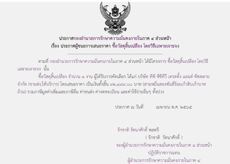 จัดซื้อ จัดจ้างประกาศผู้ชนะการเสนอราคา ประกาศผู้ชนะการเสนอราคา ซื้อวัสดุสิ้นเปลือง โดยวิธีเฉพาะเจาะจง May 12, 2022 412 Share Facebook Twitter Google+ Telegram LINE