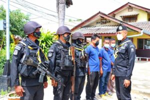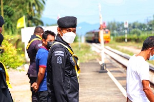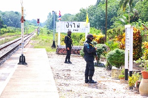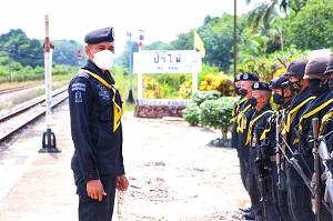 เมื่อวันที่ 13 พ.ค.65 ที่ สถานีรถไฟบ้านป่าไผ่ ตำบลตันหยงลิมอ อำเภอระแงะ จังหวัดนราธิวาส พันเอกทวีรัตน์ เบญจาทิกุล ผู้บังคับหน่วยเฉพาะกิจกรมทหารพรานที่ 45 และคณะ เดินทางลงพื้นที่ตรวจเยี่ยมชุดปฏิบัติการพิทักษ์พื้นที่ กองร้อยทหารพรานที่ 4503 และกองร้อยทหารพรานที่ 4504 และอาสาสมัครประจำพื้นที่ ที่ปฏิบัติหน้าที่รักษาความปลอดภัยเส้นทางรถไฟ สถานีบ้านป่าไผ่ พร้อมทั้งได้มอบแนวทางการปฏิบัติ และสกัดกั้นไม่ให้มีการก่อเหตุในพื้นที่ สร้างความอุ่นใจและความปลอดภัยให้กับประชาชนในพื้นที่