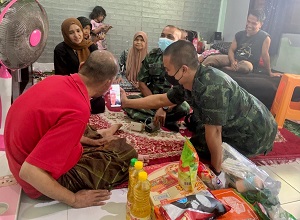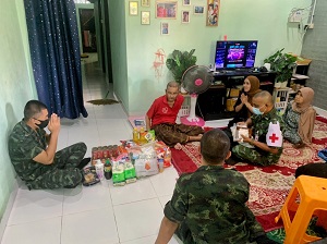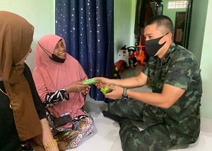 วันนี้ (14 พ.ค.65) ผู้บังคับกองพันทหารราบที่ 1 กรมทหารราบที่ 25 เดินทางเข้าพบปะเยี่ยมเยียนครอบครัว พลทหาร อีสกานดา ยะการียา ทหารใหม่ ผลัด 1/65 โดยพลทหารดังกล่าว เป็นผู้ที่ตั้งใจเสียสละสมัครรับราชการเข้ามาเป็นทหารกองประจำการซึ่งมีความมุ่งมั่นต้องการที่จะรับใช้ชาติ แต่ด้วยทางบ้าน มีฐานะความเป็นอยู่ที่ยากลำบาก บิดาป่วยเป็นอัมพฤกษ์ ทางกองพันทหารราบที่ 1 กรมทหารราบที่ 25 จึงเดินทางเข้าเยี่ยมให้กำลังใจ นายยะปา ยะการียา อายุ 57 ปี ผู้เป็นบิดา ตามนโยบายของกองทัพบก ในการดูแลทหารกองประจำการ ซึ่งบิดาป่วยเป็นอัมพฤกษ์ ไม่สามารถเคลื่อนไหวขาท่อนล่างได้เป็นเวลามากกว่า 10 ปี และจำเป็นต้องย้ายมาอาศัยกับพี่ชายที่ บ้านจือแร ตำบลแม่ดง อำเภอแว้ง จังหวัดนราธิวาส เพื่อช่วยดูแลบิดาแทนตนในระหว่างที่ ตนเองสมัครรับราชการเป็นพลทหาร