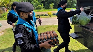 เมื่อวันที่ 15 พฤษภาคม 2565 เวลา 13.30 น. ที่ โครงการหมู่บ้านเศรษฐกิจพอเพียง ฟารม์ตัวอย่างในสมเด็จพระนางเจ้าสิริกิติ์ พระบรมราชินีนาถ บ้านเจาะเกาะ หมู่ที่ 1 ตำบลบูกิต อำเภอเจาะไอร้อง จังหวัดนราธิวาส จ่าสิบเอกหญิง พลอยรัตน์ เพชรเรียง รองผู้บังคับหมวดทหารพรานหญิงที่ 48 นำกำลังพลชุดเสริมสร้างความเข้าใจหญิง เข้าให้การช่วยเหลือเกษตรกรในพื้นที่รับผิดชอบ โดยการรับซื้อผลผลิตพืชผักสวนครัว เพื่อมาเป็นวัตถุดิบในการนำไปประกอบอาหารใหักับกำลังพลในหน่วยเฉพาะกิจกรมทหารพรานที่ 48