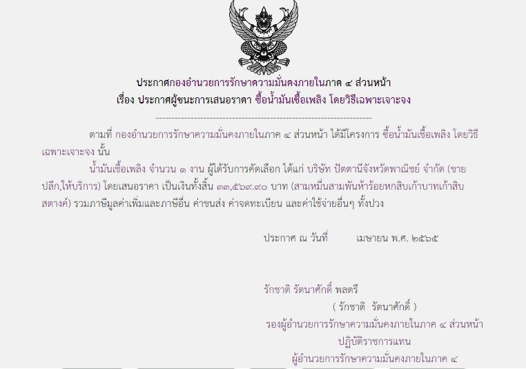 จัดซื้อ จัดจ้างประกาศผู้ชนะการเสนอราคา ประกาศผู้ชนะการเสนอราคา ซื้อน้ำมันเชื้อเพลิง โดยวิธีเฉพาะเจาะจง May 17, 2022 405 Share Facebook Twitter Google+ Telegram LINE