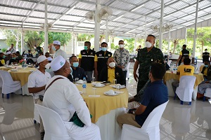 วันนี้ 17 พฤษภาคม 2565 ณ กองสานใจสู่สันติ ศูนย์สันติวิธี ตำบลบ่อทอง อำเภอหนองจิก จังหวัดปัตตานี พลโท ธิรา แดหวา รองผู้อำนวยการรักษาความมั่นคงภายในภาค 4 ส่วนหน้า/ผู้อำนวยการศูนย์สันติวิธี พบปะพูดคุยสานสัมพันธ์ผู้ประสานงานเครือข่ายสานใจสู่สันติ(สานต่อรอมฎอนสันติ)ร่วมแลกเปลี่ยนรับฟังความคิดเห็นจากผู้นำท้องที่ ผู้นำท้องถิ่น ผู้นำศาสนา ซึ่งถือเป็นผู้ประสานงานระดับพื้นที่ เป็นผู้ประสานการทำงานสร้างการรับรู้นำแนวทางนโยบายของหน่วยงานรัฐสู่ประชาชนประกอบกับในห้วงเดือนรอมฎอน ที่ฮิจเราะห์ 1443