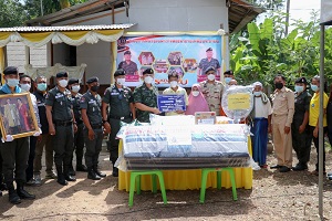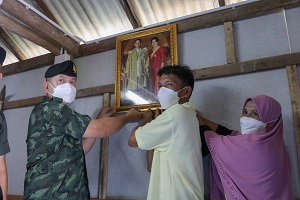 จากนั้น เวลา 15.00 น. พลตรีวรเดช เดชรักษา ผู้บังคับหน่วยเฉพาะกิจสงขลา และคณะ เดินทางต่อเพื่อส่งมอบบ้านให้กับนาย อับดุลเลาะ หะยีเฮาะ ณ บ้านเลขที่ 20/2 หมู่ที่ 11 ตำบลลำไพล อำเภอเทพา จังหวัดสงขลา ตามโครงการ “หน่วยเฉพาะกิจสงขลา ช่วยเหลือประชาชน” ยกระดับคุณภาพชีวิต สร้างขวัญและกำลังใจ เพิ่มพูนความสุขแก่ประชาชน พร้อมทั้งได้มอบพระบรมฉายาลักษณ์ พระบาทสมเด็จพระเจ้าอยู่หัวฯ และสมเด็จพระนางเจ้า พระบรมราชินี ตลอดจนมอบถุงยังชีพพระราชทาน ชุดเครื่องนอน เครื่องใช้ไฟฟ้า เครื่องอุปโภค บริโภคแก่ครอบครัว โดยมีพันโท เกรียงไกร ดำรัสการ ผู้บังคับหน่วยเฉพาะสงขลา 40 ปลัดอำเภอเทพา ผู้กำกับการสถานีตำรวจภูธรห้วยปลิง ผู้อำนวยโรงเรียนบ้านลำเปาผู้นำศาสนา หัวหน้าส่วนราชการ ประชาชนร่วมให้การต้อนรับ