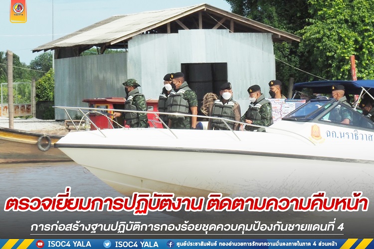 เมื่อวันที่ 19 พฤษภาคม 2565 เวลา 09.00 น. ที่ด่านศุลกากรตากใบ ตำบลเจ๊ะเห อำเภอตากใบ จังหวัดนราธิวาส พลตรี ไพศาล หนูสังข์ รองแม่ทัพภาคที่ 4 และคณะ เดินทางลงพื้นที่ ร่วมลาดตระเวนทางน้ำตรวจสอบพื้นที่ตามแนวตะเข็บชายแดนไทย – มาเลเซีย ตลอดแนวลำน้ำสุไหงโก-ลก และตรวจความคืบหน้าการก่อสร้างฐานปฏิบัติการถาวร กองร้อยชุดควบคุมป้องกันชายแดนที่ 4 โดยมี พลตรี เฉลิมพร ขำเขียว ผู้บัญชาการกองพลทหารราบที่ 15 / ผู้บังคับหน่วยเฉพาะกิจนราธิวาส,พันตำรวจเอก สุธน สุขวิเศษ รองผู้บังคับการตำรวจภูธรจังหวัดนราธิวาส พร้อมทั้งส่วนที่เกี่ยวข้องร่วมให้การต้อนรับ ทั้งนี้ พลตรี ไพศาล หนูสังข์ รองแม่ทัพภาคที่ 4 ได้กำชับเพิ่มมาตรการเข้มงวดในการดูแลรักษาความปลอดภัย ตามลำน้ำตลอดแนวชายแดนไทย-มาเลเซีย ตรวจสอบช่องทางข้ามธรรมชาติที่กั้นพรมแดนระหว่างประเทศไทย ด้านจังหวัดนราธิวาส กับรัฐกลันตันของประเทศมาเลเซีย อีกทั้งสั่งการให้หน่วยทหารในพื้นที่เพิ่มมาตรการคุมเข้มตลอดแนวชายแดนในพื้นที่รับผิดชอบ อำเภอตากใบ,อำเภอสุไหงโก-ลก และอำเภอแว้ง จังหวัดนราธิวาส การ์ดห้ามตก ต้องตื่นตัวอยู่เสมอ ตลอดจนให้หน่วยบูรณาการการปฎิบัติงานร่วมกันกับทุกภาคส่วนบังคับใช้กฎหมายตามแนวชายแดนอย่างเข้มงวด เพื่อป้องกันโควิด-19 และเฝ้าระวังภัยแทรกซ้อนต่อความมั่นคงชายแดนในทุกมิติ รวมถึงการเสริมกำลังตามแนวชายแดน โดยเฉพาะช่องทางที่มีชุมชนหรือหมู่บ้านอาศัยอยู่ใกล้แนวชายแดน การจัดตั้งจุดตรวจ/จุดสกัด และการจัดตั้งแหล่งข่าว เพื่อเพิ่มประสิทธิภาพในการสกัดกั้นไม่ให้มีการลักลอบการหลบหนีเข้าประเทศไทยโดยเด็ดขาด