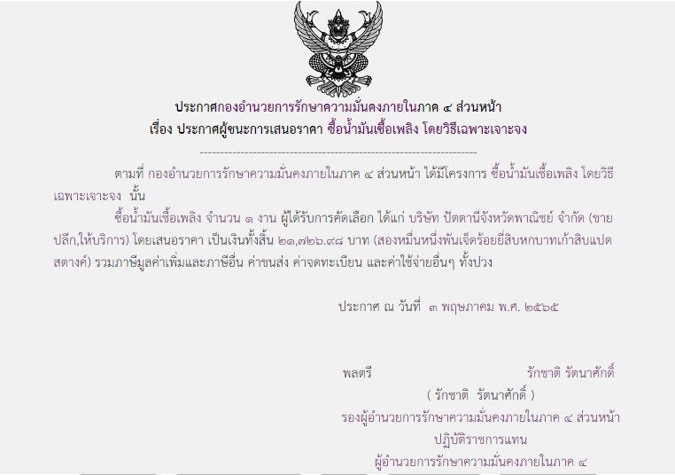 ประกาศผู้ชนะการเสนอราคา ซื้อน้ำมันเชื้อเพลิง โดยวิธีเฉพาะเจาะจง (21,726.98 บาท)
