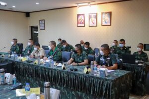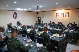 วันที่ (24 พฤษภาคม 2565 ) เวลา 13.30 น. ณ ห้องประชุม หน่วยเฉพาะกิจสงขลา ต.ท่าม่วง อ.เทพา จ.สงขลา พลตรี ปราโมทย์ พรหมอินทร์ รองแม่ทัพน้อยที่ 4 /รองผู้อำนวยการรักษาความมั่นคงภายในภาค 4 ส่วนหน้า และคณะ ตรวจเยี่ยมหน่วยขึ้นตรงกองอำนวยการรักษาความมั่นคงภายในภาค 4 ส่วนหน้า เพื่อติดตามการปฏิบัติงานเสริมสร้างเข้าใจและการสร้างความตระหนักรู้ด้านการประชาสัมพันธ์ และการขับเคลื่อนหน่วยชุดคุ้มครองตำบล และสนับสนุนแผนเสริมสร้างสันติสุขจังหวัดชายแดนภาคใต้ ประจำปี 2565 เพื่อสร้างความเข้าใจถึงการดำเนินงานและการมีส่วนร่วมของพี่น้องประชาชน ในพื้นที่ 4 อำเภอ ของจังหวัดสงขลา โดยมี พันเอก นิติ ติณสูลานนท์ รองเลขาธิการ กองอำนวยการรักษาความมั่นคงภายในภาค 4 ส่วนหน้า, พันเอก ปัญญาพล สุรทิณฑ์ รองผู้บังคับหน่วยเฉพาะกิจสงขลา ผู้แทนจากกองอำนวยการรักษาความมั่นคงภายในจังหวัดสงขลา รวมถึงผู้บังคับหน่วยเฉพาะกิจในพื้นที่ และส่วนที่เกี่ยวข้องร่วมประชุมในครั้งนี้