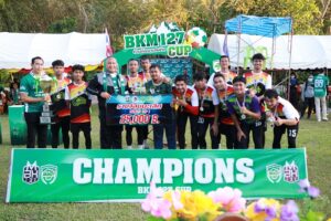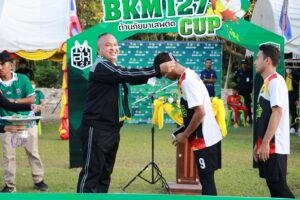 วันนี้ 24 พฤษภาคม 2565 เวลา 16.00 น. ณ สนามฟุตบอลบ้านบูกิตตาโมง ตำบลบูกิต อำเภอเจาะไอร้อง จังหวัดนราธิวาส พลโท เกรียงไกร ศรีรักษ์ แม่ทัพภาคที่ 4 /ผู้อำนวยการรักษาความมั่นคงภายในภาค 4 เป็นประธานพิธีปิดการแข่งขันฟุตบอล 7 คน BKM 127 CUP ต้านภัยยาเสพติด ครั้งที่ 1 ที่จัดขึ้นเพื่อส่งเสริมความสามัคคีในหมู่คณะ พัฒนาทักษะการเล่นฟุตบอลของเยาวชนจังหวัดและเพื่อสร้างความสัมพันธ์ที่ดีระหว่างเยาวชนในพื้นที่จังหวัดชายแดนภาคใต้ อีกทั้งให้เยาวชนได้ตระหนักรวมถึงทราบปัญหาและพิษภัยของยาเสพติด ซึ่งจัดขึ้นในระหว่างวันที่ 21 – 24 พฤษภาคม 2565 มีผู้สมัครเข้าร่วมการแข่งขันในครั้งนี้ทั้งหมด จำนวน 96 ทีม จากพื้นที่ 3 จังหวัดชายแดนภาคใต้ ได้แก่ จังหวัดสงขลา ปัตตานี ยะลา สงขลา และสตูล โดยมีหัวหน้าส่วน, ผู้นำท้องที่, ผู้นำท้องถิ่นและประชาชนเข้าร่วมชมการแข่งขันเป็นจำนวนมาก นอกจากนี้ ในกิจกรรมได้มีการแสดงปันจักสีลัตจากตัวแทนชมรมทูบีนัมเบอร์วันโรงเรียนบ้านบูกิตตามง และตัวแทนนักกีฬาทีมชาติ ร่วมการแสดง พร้อมกันนี้คณะยังได้ชมการแข่งขันนัดชิงชนะเลิศ พร้อมมอบถ้วยรางวัลและเงินรางวัลรวม 43,000 บาท