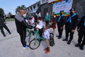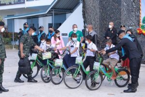 วันนี้ 24 พฤษภาคม 2565 เวลา 15.00 น. ที่หน่วยเฉพาะกิจกรมทหารพรานที่ 48 อำเภอเจาะไอร้อง จังหวัดนราธิวาส พลโท เกรียงไกร ศรีรักษ์ แม่ทัพภาคที่ 4/ผู้อำนวยการรักษาความมั่นคงภายในภาค 4 เป็นประธานมอบจักรยานตามโครงการ “จักรยาน สานฝัน ปันสุข” และ “ถุงยังชีพเพื่อการศึกษา” ให้กับน้องๆ นักเรียนโรงเรียนราชพัฒนา จำนวน 5 ราย เพื่อเป็นการขยายโอกาส สร้างแรงบันดาลใจ ต่อยอดทางการศึกษา พัฒนาคุณภาพชีวิตความเป็นอยู่สู่ตนเอง ครอบครัว และชุมชน โดยมีพันเอก ก่อเกียรติ เข็มแดง รองผู้บังคับหน่วยเฉพาะกิจนราธิวาส พร้อมด้วย พันเอก ภาคิน เกื้อกูล ผู้บังคับหน่วยเฉพาะกิจกรมทหารพรานที่ 48 และกำลังพลร่วมให้การต้อนรับ