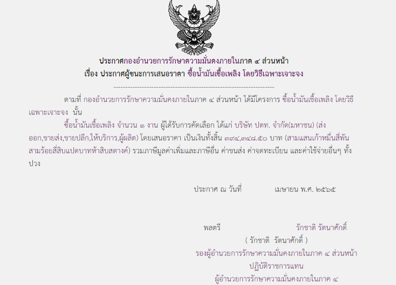 จัดซื้อ จัดจ้างประกาศผู้ชนะการเสนอราคา ประกาศผู้ชนะการเสนอราคา ซื้อน้ำมันเชื้อเพลิง โดยวิธีเฉพาะเจาะจง ( 394,348.50 บาท ) May 25, 2022 408 Share Facebook Twitter Google+ Telegram LINE