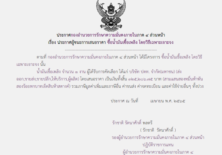 จัดซื้อ จัดจ้างประกาศผู้ชนะการเสนอราคา ประกาศผู้ชนะการเสนอราคา ซื้อน้ำมันเชื้อเพลิง โดยวิธีเฉพาะเจาะจง ( 325,206.75 บาท ) May 25, 2022 399 Share Facebook Twitter Google+ Telegram LINE