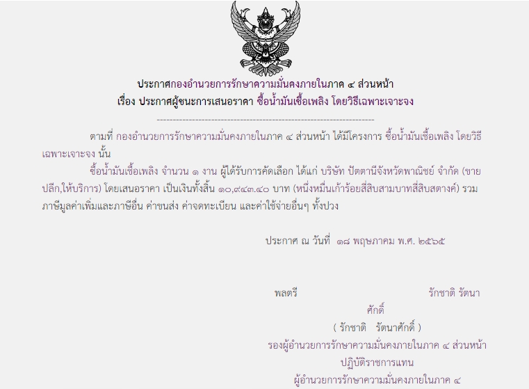 จัดซื้อ จัดจ้างประกาศผู้ชนะการเสนอราคา ประกาศผู้ชนะการเสนอราคา ซื้อน้ำมันเชื้อเพลิง โดยวิธีเฉพาะเจาะจง ( 10,943.40 บาท ) May 28, 2022 403 Share Facebook Twitter Google+ Telegram LINE