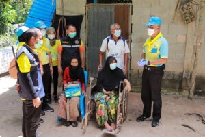 วันนี้ (28 พฤษภาคม 2565) พลตรี อุทิศ อนันตนานนท์ รองผู้อำนวยการรักษาความมั่นคงภายในภาค 4 ส่วนหน้า/หัวหน้าจิตอาสา 904 ภาค 4 และคณะฯ พร้อมทั้ง พันเอก ภาคภูมิ จันทรักษ์ ผู้บังคับหน่วยเฉพาะกิจกรมทหารพรานที่ 44 เจ้าหน้าที่สำนักงานพัฒนาสังคมและมั่นคงของมนุษย์จังหวัดปัตตานี ปลัดอำเภอกะพ้อ ผู้นำท้องที่ ผู้นำท้องถิ่น และส่วนที่เกี่ยวข้อง ลงพื้นที่พบปะเยี่ยมเยียนให้กำลังใจพร้อมมอบถุงยังชีพให้แก่ผู้ป่วยติดเตียง ผู้สูงอายุ ผู้พิการ และผู้ยากไร้ ในพื้นที่อำเภอกะพ้อ จังหวัดปัตตานี ตามโครงการ “ห่วงใย ใส่ใจ ประชาชนกลุ่มเปราะบาง“ เพื่อช่วยเหลือบรรเทาความเดือดร้อนและให้กำลังใจในการดำเนินชีวิต