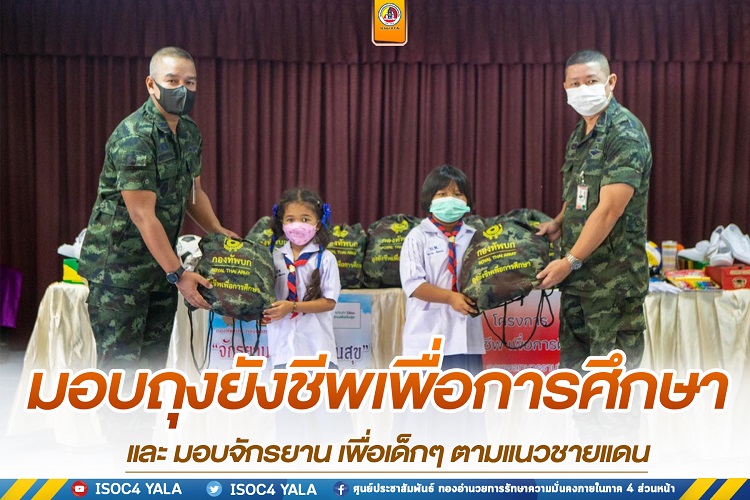เจ้าหน้าทหารจาก กรมทหารราบที่ 5 มอบถุงยังชีพเพื่อการศึกษา อุปกรณ์การเรียน, สื่อการเรียนการสอน, ของเล่น/ตุ๊กตา และรถจักรยาน ตามโครงการ “ถุงยังชีพเพื่อการศึกษา” และ “จักรยาน สานฝัน ปันสุข” ให้กับโรงเรียนตามแนวชายแดน เพื่อเป็นการสร้างโอกาสทางการศึกษาให้แก่นักเรียน ณ โรงเรียนตำรวจตระเวนชายแดนบ้านชายควน ต.ปาดังเบซาร์ อ.สะเดา จ.สงขลา