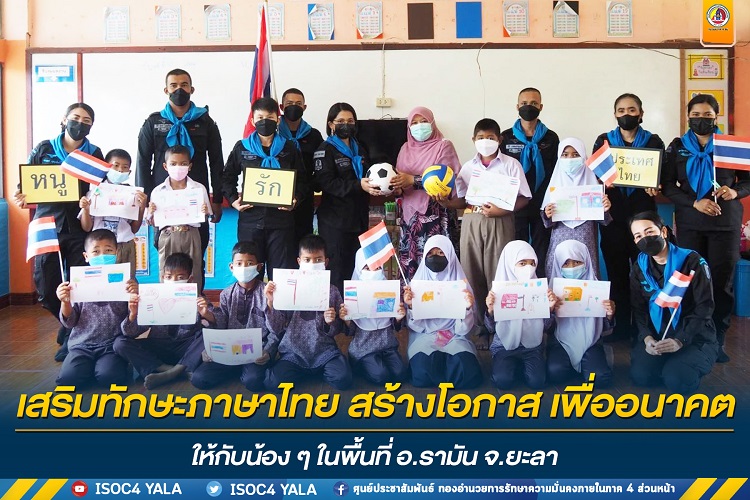 หน่วยเฉพาะกิจกรมทหารพรานที่ 41 จัดกำลังพลชุดปฏิบัติการเสริมสร้างความเข้าใจ หมวดทหารพรานหญิง ร่วมกับ คณะครู โรงเรียนบ้านวังพญา จัดกิจกรรมโครงการ “เสริมทักษะภาษาไทย สร้างโอกาส เพื่ออนาคต” เพื่อเพิ่มทักษะผู้เรียน ที่พูด อ่าน เขียน ให้มีพัฒนาการที่ดีขึ้น และปลูกจิตสำนึกในความรักชาติ ศาสนา พระมหากษัตริย์ รวมถึงการให้คำแนะนำในการดูแลตนเอง การร่วมกันป้องกันการแพร่ระบาดของโรคโควิด-19 ณ โรงเรียนบ้านวังพญา ต.วังพญา อ.รามัน จ.ยะลา