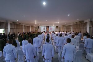 วันที่ 2 มิถุนายน 2565 เวลา 07.30 น ที่ ลานอนุสาวรีย์ รัชกาลที่ 6 ค่ายวชิราวุธ ตำบลปากพูน อำเภอเมือง จังหวัดนครศรีธรรมราช พลโท เกรียงไกร ศรีรักษ์ แม่ทัพภาคที่ 4 / ผู้อำนวยการรักษาความมั่นคงภายในภค 4 พร้อมด้วย คุณคนึงนิตย์ ศรีรักษ์ ประธานสมาคมแม่บ้านทหารบก สาขากองทัพภาคที่ 4 เป็นประธานในกิจกรรมเฉลิมพระเกียรติ เนื่องในโอกาสวันเฉลิมพระชนมพรรษา สมเด็จพระนางเจ้าสุทิดา พัชรสุธาพิมลลักษณ พระบรมราชินี 44 พรรษา 3 มิถุนายน 2565 ประกอบด้วย พิธีทำบุญตักบาตรพระสงฆ์ จำนวน 20 รูป ถวายเป็นพระราชกุศล พิธีถวายเครื่องราชสักการะ ถวายราชสดุดี ถวายพระพรชัยมงคล พิธีสวดเจริญพระพุทธมนต์ และลงนามถวายพระพรตามลำดับ ทั้งนี้เพื่อแสดงออกถึงความจงรักภักดี เทิดทูนสถาบันพระมหากษัตริย์ และสำนึกในพระมหากรุณาธิคุณ ที่ทรงปฏิบัติพระราชกรณียกิจเป็นเอนกประการ ปฏิบัติงานถวายแด่พระบาทสมเด็จพระเจ้าอยู่หัว ด้วยพระวิริยะอุตสาหะ และความจงรักภักดี ทั้งมีพระปรีชาสามารถด้านการทหารเป็นที่ประจักษ์แก่ผ่องพสกนิกร โดยมี คณะผู้บังคับบัญชา, สมาคมแม่บ้านทหารบก สาขากองทัพภาคที่ 4 และกำลังพลเข้าร่วมพิธี ภายใต้มาตรการป้องกันการแพร่ระบาดของเชื้อไวรัสโควิด-19 อย่างเคร่งครัด