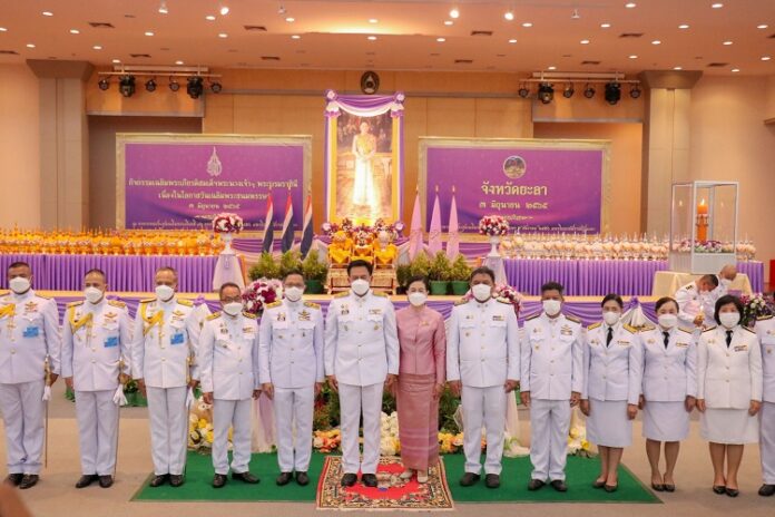 เมื่อวันที่ 3 มิถุนายน 2565 เวลา 19.19 น. พลตรี อุทิศ อนันตนานนท์ รองผู้อำนวยการรักษาความมั่นคงภายในภาค 4 ส่วนหน้า พร้อมด้วย หัวหน้าส่วนราชการ ทหาร ตำรวจ ภาครัฐ และภาคเอกชน และหน่วยงานในจังหวัดยะลา ร่วมพิธีถวายราชสักการะ วางพานพุ่ม และพิธีจุดเทียนชัยถวายพระพรชัยมงคล สมเด็จพระนางเจ้าสุทิดา พัชรสุธาพิมลลักษณ พระบรมราชินี เนื่องในโอกาสวันเฉลิมพระชนมพรรษา 44 พรรษา วันที่ 3 มิถุนายน 2565 ณ หอประชุมเฉลิมพระเกียรติ 80 พรรษา 5 ธันวาคม 2550 มหาวิทยาลัยราชภัฏยะลา โดยมี นายภิรมย์ นิลทยา ผู้ว่าราชการจังหวัดยะลา เป็นประธานถวายเครื่องราชสักการะ ถวายราชสดุดีเฉลิมพระเกียรติ พร้อมถวายพระพรชัยมงคลเบื้องหน้าพระฉายาลักษณ์ สมเด็จพระนางเจ้าสุทิดา พัชรสุธาพิมลลักษณ พระบรมราชินี ผู้เข้าร่วมพิธีจุดเทียนถวายพระพรชัยมงคล พร้อมขับร้องเพลงสดุดีจอมราชา อย่างพร้อมเพรียงกัน