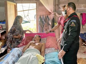 เมื่อวันที่ 4 มิถุนายน 2565 เวลา 15.00 น. พันเอก สุรศักร ทั่วด้าว ผู้บังคับหน่วยเฉพาะกิจกรมทหารพรานที่ 47 ลงพื้นที่บ้านพักในชุมชนพื้นที่ หมู่ที่ 8 บ้านบาโย ตำบลบาโร๊ะ อำเภอยะหา จังหวัดยะลา พบปะเยี่ยมเยียนประชาชนกลุ่มเปราะบาง (ผู้ป่วยติดเตียง) และครอบครัว เพื่อให้กำลังใจในการดำเนินชีวิต รวมทั้งได้สอบถามปัญหาข้อขัดข้องต่างๆ เพื่อทางหน่วยจะได้หาหนทางในการช่วยเหลือในโอกาสต่อไป