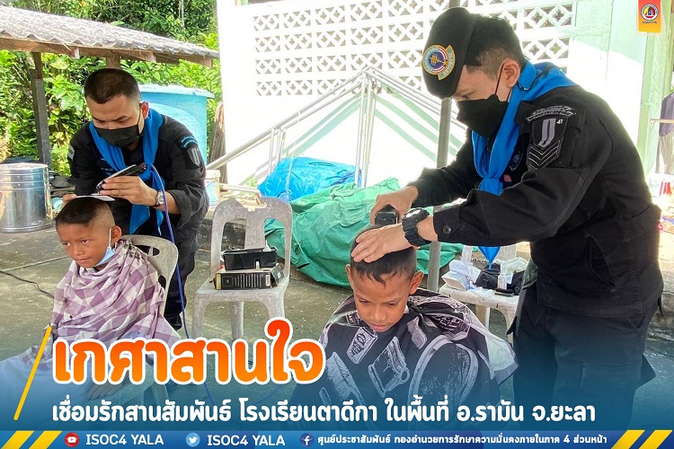 นอกจากนี้ เจ้าหน้าที่ทหารพรานยังได้จัดกิจกรรม “โครงการเกศาสานใจ เชื่อมรักสานสัมพันธ์” โดยการให้บริการตัดผมกับเด็กนักเรียน เพื่อให้เด็กนักเรียนมีทรงผมสั้น สะอาดเรียบร้อย และยังเป็นการช่วยแบ่งเบาภาระลดค่าใช้จ่ายในครัวเรือนของนักเรียน และผู้ปกครองด้วย ซึ่งสร้างความสุข และสร้างรอยยิ้มให้กับคณะครู และนักเรียน ตลอดจนยังเป็นการพัฒนาเสริมสร้างความสัมพันธ์อันดี สร้างภาพลักษณ์ที่ดีของหน่วยอีกด้วย