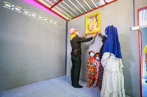 เมื่อวันที่ 5 มิถุนายน 2565 เวลา 10.30 น. พลตรี อุทิศ อนันตนานนท์ รองผู้อำนวยการรักษาความมั่นคงภายในภาค 4 ส่วนหน้า/หัวหน้าจิตอาสา 904 ภาค 4 ลงพื้นที่ ไปยังบ้านเลขที่ 21/6 หมู่ 2 บ้านตันหยง ตำบลบาโร๊ะ อำเภอยะหา จังหวัดยะลา เพื่อส่งมอบบ้านให้กับนางสาวซียะ คานิง ตามโครงการ หน่วยเฉพาะกิจยะลาไม่ทิ้งท่าน ยกระดับคุณภาพชีวิต สร้างขวัญและกำลังใจ เพิ่มพูนความสุขแก่ประชาชน พร้อมทั้งได้มอบพระบรมฉายาลักษณ์ พระบาทสมเด็จพระเจ้าอยู่หัวฯ และสมเด็จพระนางเจ้า พระบรมราชินี พร้อมกันนี้คณะ ได้มอบชุดเครื่องนอน เครื่องใช้ไฟฟ้า เครื่องอุปโภค บริโภคแก่ครอบครัว และมอบป้ายชื่อพร้อมเลขที่บ้าน โดยมีหัวหน้าส่วนราชการ, ผู้นำท้องที่, ผู้นำท้องถิ่น ตลอดจนประชาชนในพื้นที่ร่วมให้การต้อนรับและร่วมกิจกรรม