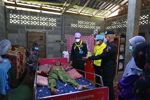 จากนั้น คณะเดินทางต่อไปยังบ้านเลขที่ 96 หมู่ 8 บ้านบาโย ตำบลบาโร๊ะ อำเภอยะหา จังหวัดยะลา เยี่ยมนายซาการียา อารี อายุ 27 ปี ป่วยติดเตียงไม่สามารถช่วยเหลือตัวเองได้นานกว่า 7 ปี ทั้งนี้รองผู้อำนวยการรักษาความมั่นคงภายในภาค 4 ส่วนหน้า ได้พบปะพูดคุยสอบถามความเป็นอยู่ พร้อมมอบถุงยังชีพช่วยเหลือ และให้กำลังใจแก่ครอบครัว
