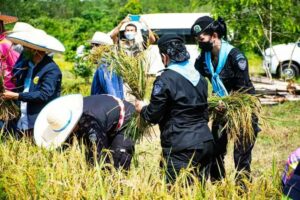 หน่วยเฉพาะกิจกรมทหารพรานที่ 48 นำกำลังพล ร่วมกับ ส่วนราชการ กำนัน ผู้ใหญ่บ้าน และประชาชนในพื้นที่ จัดกิจกรรมโครงการ “ชลประทานร่วมใจ ลงแขกเกี่ยวข้าว ประจำปี 2565” ร่วมกันลงแขกเกี่ยวข้าวในแปลงนากลุ่มผู้ใช้น้ำ (พื้นฐาน) สถานีสูบน้ำด้วยไฟฟ้าตอนมะรือโบออก หมู่ที่ 5 ตำบลจวบ อำเภอเจาะไอร้อง จังหวัดนราธิวาส เพื่อแสดงให้เห็นถึงความสมัครสมานสามัคคีของพี่น้องประชาชนในพื้นที่ ในการร่วมใจกันสืบสานวัฒนธรรมประเพณีการลงแขกเกี่ยวข้าวที่มีมาแต่โบราณ อีกทั้งยังเป็นการสร้างความสัมพันธ์อันดีระหว่างส่วนราชการ โดยมี นายเฉลิมชัย ตรีนรินทร์ ผู้อำนวยการสำนักงานกรมชลประทานที่ 17 เป็นประธาน