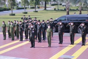 วันนี้ 8 มิถุนายน 2565 พลเอก ณรงค์พันธ์ จิตต์แก้วแท้ ผู้บัญชาการทหารบก / ผู้บัญชาการศูนย์ปฏิบัติการกองทัพบก พร้อมด้วย พลตรีหญิง พิมพ์พิศา จิตต์แก้วแท้ นายกสมาคมแม่บ้านทหารบก และคณะผู้บังคับบัญชาจากกองทัพบก เดินทางตรวจเยี่ยมหน่วยฝึกทหารใหม่ในพื้นที่กองทัพภาคที่ 4 ผลัดที่ 1 ประจำปี 2565 และการดำเนินงานแม่บ้านของหน่วยกองทัพภาคที่ 4 ทั้งนี้เพื่อตรวจเยี่ยมการฝึก และติดตามการดำเนินงานของหน่วยฝึกให้เป็นไปตามนโยบาย โดยมี พลโท เกรียงไกร ศรีรักษ์ แม่ทัพภาคที่ 4, คุณคนึงนิตย์ ศรีรักษ์ ประธานสมาคมแม่บ้านทหารบก สาขากองทัพภาคที่ 4 และคณะผู้บังคับบัญชา จากกองทัพภาคที่ 4 ร่วมให้การต้อนรับ
