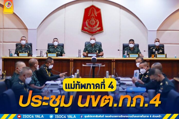 วันนี้ 9 มิถุนายน 2565 เวลา 10.00 น. ที่ ห้องประชุมกองบัญชาการกองทัพภาคที่ 4 ค่ายวชิราวุธ อำเภอเมือง จังหวัดนครศรีธรรมราช พลโท เกรียงไกร ศรีรักษ์ แม่ทัพภาคที่ 4/ผู้อำนวยการรักษาความมั่นคงภายในภาค 4 เป็นประธานการประชุมหน่วยขึ้นตรงกองทัพภาคที่ 4 (วาระพิเศษ) ผ่านระบบ VTC เน้นย้ำนโยบายสำคัญ และข้อสั่งการของผู้บัญชาการทหารบกที่เกี่ยวข้องกับกองทัพภาคที่ 4 โดยก่อนวาระการประชุมแม่ทัพภาคที่ 4 ได้มอบประกาศชมเชย ผลการปฏิบัติหน้าที่ของกำลังพล ชุดปราบปรามยาเสพติดกองทัพภาคที่ 4 จำนวน 10 นาย ซึ่งได้สนธิกำลังร่วมกับเจ้าหน้าที่ส่วนที่เกี่ยวข้องจับกุมผู้กระทำความผิด พร้อมของกลางยาเสพติด (ยาบ้า) และของกลางอีกหลายรายการ และมอบทุนการศึกษาให้กับบุตรของกำลังพล สังกัดกองทัพภาคที่ 4 ที่สามารถสอบเข้าศึกษาในโรงเรียนเตรียมทหารสถาบันวิชาการป้องกันประเทศ (รร.ตท.สปท.) ประจำปี 2565 จำนวน 6 นาย