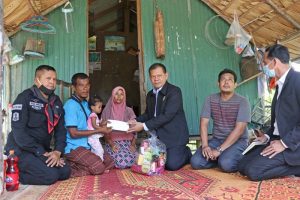 จากนั้น พลเรือตรี สมเกียรติ ผลประยูร เลขาธิการ ศอ.บต. พร้อมคณะฯ ลงพื้นที่เยี่ยมให้กำลังแก่ครอบครัวของนายต่วนฮูเซ็น ดอเลาะ ซึ่งเป็นหัวหน้าครอบครัว โดยมีสมาชิกครอบครัวทั้งหมด 12 คน ได้ประกอบอาชีพรับจ้างทั่วไป และมีรายได้ไม่แน่นอน บางวันก็ไม่มีรายได้ ทำให้ครอบครัวไม่มีอาหารกิน ต้องอยู่ด้วยความลำบาก โดยเบื้องต้นเลขาธิการ ศอ.บต. เร่งหาอาชีพการทำงานในโรงงานเฟอร์นิเจอร์ เพื่อให้ครอบครัวดังกล่าวมีคุณภาพชีวิตที่ดีขึ้นและสามารถเลี้ยงครอบครัวให้มีความสุข