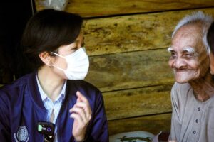จากนั้นคณะ ได้นั่งรถ 3 ล้อพ่วงข้าง เดินทางไปมอบถุงยังชีพให้แก่นายดอเลาะ เจ๊ะซอ อายุ 96 ปี อาศัยอยู่บ้านเลขที่ 12/3 ม.1 ต.ท่าธง อ.รามัน จ.ยะลา ซึ่งเป็นกลุ่มคนเปราะบางไม่สามารถหารายได้เพื่อเลี้ยงชีพตัวเองได้ พร้อมกันนี้ได้สอบถามถึงปัญหาความเป็นอยู่และให้กำลังใจในการดำเนินชีวิต