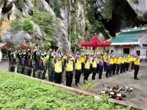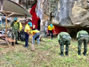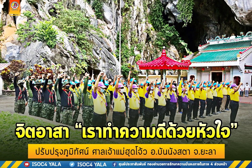 กองพันทหารราบที่ 1 กรมทหารราบที่ 152 นำกำลังพลจิตอาสาบำเพ็ญประโยชน์ ร่วมกับ ส่วนราชการ ผู้นำชุมชน ผู้นำท้องถิ่น และประชาชนจิตอาสาในพื้นที่ ร่วมกิจกรรมจิตอาสา เราทำความดีด้วยหัวใจ โดยการปรับปรุงภูมิทัศน์ทำความสะอาด เก็บกวาดขยะ, ขัดพื้น และตัดหญ้า บริเวณพื้นที่ศาลเจ้าแม่ฮุดโจ้ว ตำบลถ้ำทะลุ อำเภอบันนังสตา จังหวัดยะลา เพื่อจัดการดูแลปรับปรุงสถานที่สาธารณะประโยชน์ของชุมชนให้สะอาด และเตรียมเปิดเป็นสถานที่ท่องเที่ยวของชุมชน โดยมี นาย ศรัทธา คชพลายุกต์ รองเลขาธิการศูนย์อำนวยการบริหารจังหวัดชายแดนภาคใต้ เป็นประธานในกิจกรรมดังกล่าว