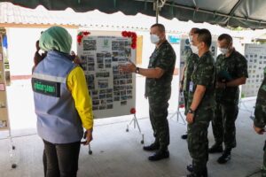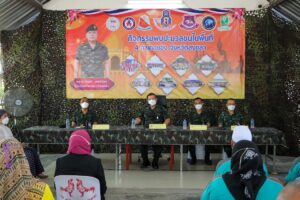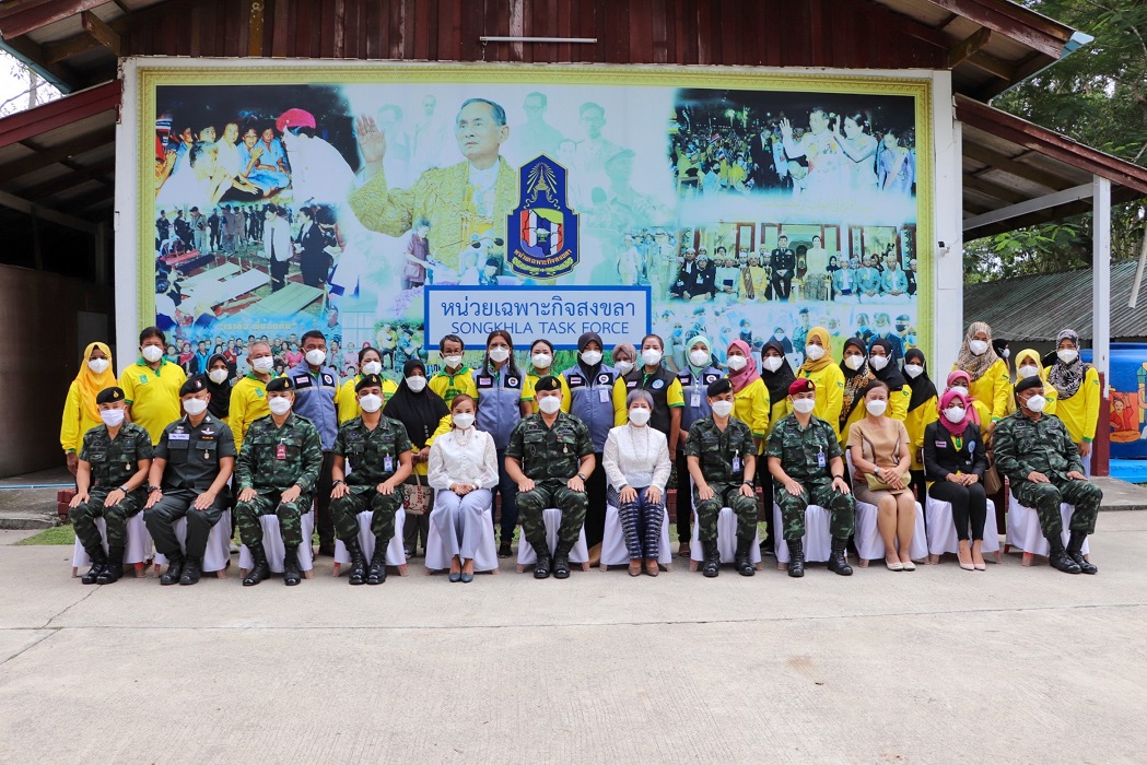 วันนี้ (11 มิถุนายน 2565) เวลา 10.00 น. ณ อาคารอเนกประสงค์ หน่วยเฉพาะกิจสงขลา อำเภอเทพา จังหวัดสงขลา พลตรี วรเดช เดชรักษา ผู้บัญชาการกองพลทหารราบที่ 5 / ผู้บังคับหน่วยเฉพาะกิจสงขลา พบปะประชาชนจิตอาสาในพื้นที่ 4 อำเภอของจังหวัดสงขลา ประกอบด้วย กลุ่มเสื้อเขียว, กลุ่มญาลันนันบารู, กลุ่มทำดีมีอาชีพ และกลุ่มโฆษกชาวบ้าน ร่วมกันหารือเพื่อขับเคลื่อนแนวทางการแก้ไขปัญหาในพื้นที่จังหวัดชายแดนภาคใต้ในทุกมิติ โดยมี พันเอก ปองเชษฐ์ พูนช่วย รองผู้อำนวยการสำนักมวลชนและกิจการพิเศษ, พันเอก ชัยนรินทร์ เกษมโชติธนพัฒน์ เสนาธิการศูนย์ป้องกันและแก้ไขปัญหายาเสพติด, พันเอก ทศพล ลึกลับพนาวัลย์ ผู้อำนวยการสำนักสารสนเทศ กองอำนวยการรักษาความมั่นคงภายในภาค 4 ส่วนหน้า, พันโท เกรียงไกร ดำรัสการ ผู้บังคับหน่วยเฉพาะกิจสงขลา 40, ผู้แทนหน่วยเฉพาะกิจตำรวจตะเวนชายแดนที่ 43, เจ้าหน้าที่ตำรวจ ทหาร, หัวหน้าส่วนราชการ ตลอดจนกลุ่มเสื้อเขียว, กลุ่มญาลันนันบารู, กลุ่มทำดีมีอาชีพ และกลุ่มโฆษกชาวบ้าน ในพื้นที่ 4 อำเภอของจังหวัดสงขลาเข้าร่วม ภายใต้มาตรการป้องกันการแพร่ระบาดของเชื้อไวรัสโควิด-19 อย่างเคร่งครัด