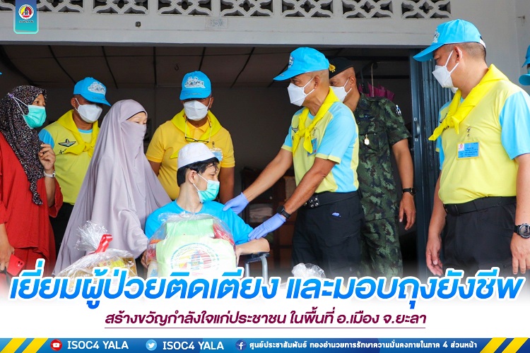 สำหรับการเยี่ยมผู้ป่วยและมอบถุงยังชีพตามโครงการ “ห่วงใย ใส่ใจ ประชาชนกลุ่มเปราะบาง “ซึ่งเป็นผู้ป่วยกลุ่มเปราะบางในพื้นที่ อำเภอเมือง จังหวัดยะลา จำนวน 9 ราย ได้แก่ นายอับดุลรอฟาร ยินสุหรง, นายอาดือนันทร์ มะเซ็ง, นายมาหะมะกอซี มะเซ็ง, นายแนม ขวัญเชื้อ, นางนิรอเม๊าะ เจ๊ะอีแต, นางหนูพัฒน์ ศิริวงศ์, นางแอเสาะ มะเกะ นายอุสมาน ยูโซ๊ะ และ นายฮามะ หามะ สร้างรอยยิ้ม สร้างขวัญกำลังใจที่ดีให้กับผู้ป่วยรวมถึงญาติ และครอบครัว เพื่อแสดงให้เห็นว่าหน่วยงานทุกภาคส่วนให้ความสำคัญใส่ใจเรื่องคุณภาพชีวิตความเป็นอยู่ของประชาชน และพร้อมจะดูแลประชาชนในทุกความเดือดร้อน