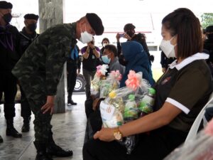 โอกาสนี้ พลตรี คมกฤช รัตนฉายา ผู้บังคับหน่วยเฉพาะกิจปัตตานี กล่าวว่า โครงการช่วยเหลือเยียวยาผู้ได้รับผลกระทบในพื้นที่ จชต. เป็นโครงการที่ดีในการช่วยเหลือประชาชน ทั้งไทยพุทธและไทยมุสลิม ได้ดำเนินงานมาอย่างต่อเนื่อง ด้วยการมอบเครื่องอุปโภค-บริโภค หากมีเรื่องราวที่ต้องการความช่วยเหลือหน่วยเฉพาะกิจปัตตานี พร้อมให้ความช่วยเหลือ “เพราะทหารเป็นที่พึ่งของประชาชน”