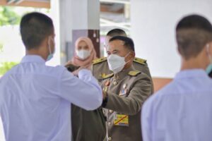 จากนั้นเวลา 14.00 น. พลเอก ไพบูลย์ คุ้มฉายา องคมนตรี ในฐานะ กรรมการและรองเลขาธิการมูลนิธิพระดาบส / ประธานคณะกรรมการบริหารสถานศึกษาโรงเรียนพระดาบสจังหวัดชายแดนภาคใต้ และคณะเดินทางยังโรงเรียนพระดาบสจังหวัดชายแดนภาคใต้ สังกัดมูลนิธิพระดาบส อำเภอเมือง จังหวัดยะลา เพื่ออัญเชิญอุปกรณ์การเรียนพระราชทานมอบให้กับศิษย์พระดาบสจังหวัดชายแดนภาคใต้ รุ่นที่ 12 ประจำปีการศึกษา 2565 พร้อมประชุม ติดตามผลการดำเนินการ และปฏิบัติงานของโรงเรียนให้สำเร็จเป็นไปตามวัตถุประสงค์ของมูลนิธิ โดยมี พลเอก สมพล ปานกุล ผู้อำนวยการโรงเรียนพระดาบสจังหวัดชายแดนภาคใต้ คณะกรรมการสถานศึกษา บุคลากร และศิษย์โรงเรียนพระดาบสจังหวัดชายแดนภาคใต้เข้าร่วมพิธี และร่วมประชุมตามลำดับ