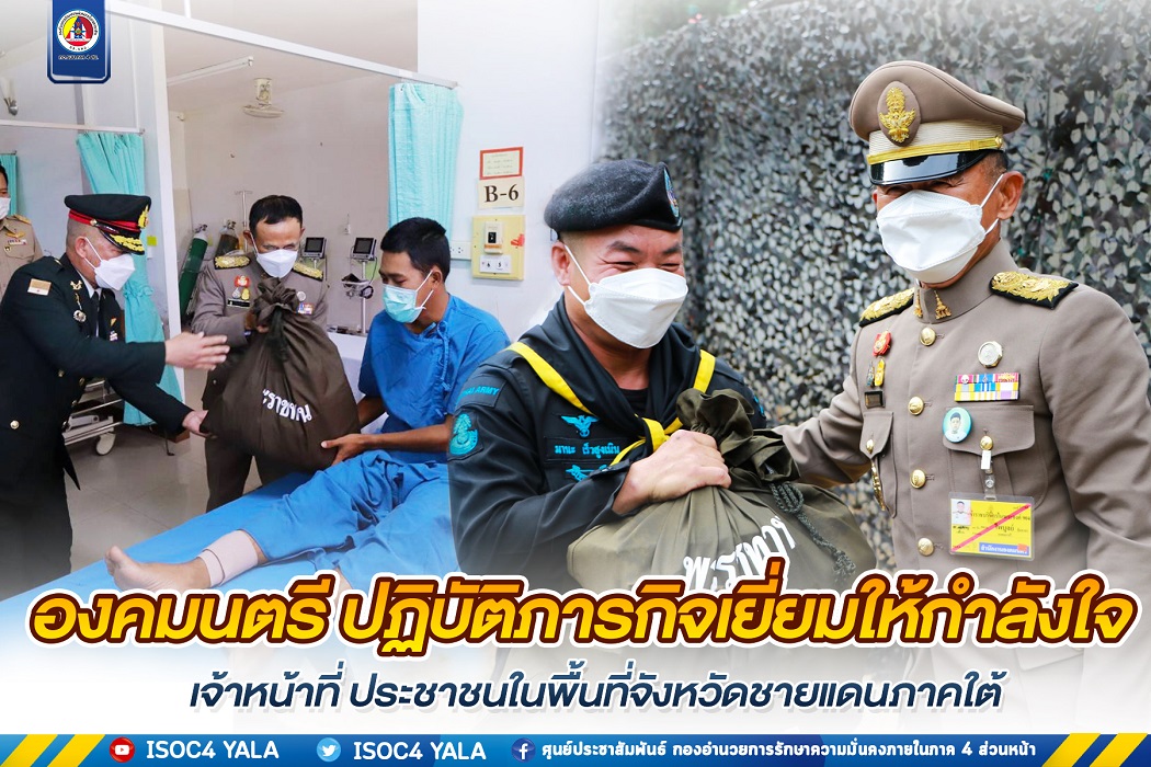 วันนี้ 15 มิถุนายน 2565 พระบาทสมเด็จพระเจ้าอยู่หัว ทรงพระกรุณาโปรดเกล้าฯให้ พลเอก ไพบูลย์ คุ้มฉายา องคมนตรี เป็นผู้แทนพระองค์ ลงพื้นที่ปฏิบัติภารกิจเยี่ยมให้กำลังใจเจ้าหน้าที่ และประชาชนผู้ได้รับผลกระทบจากสถานการณ์ในพื้นที่จังหวัดชายแดนภาคใต้ พร้อมเชิญสิ่งของพระราชทาน และติดตามสถานการณ์ในพื้นที่จังหวัดนราธิวาส ปัตตานี และยะลา โดยมี พลเอก พรศักดิ์ พูลสวัสดิ์ คณะกรรมการผู้แทนพิเศษของรัฐบาล, พลโท เกรียงไกร ศรีรักษ์ แม่ทัพภาคที่ 4 / ผู้อำนวยการรักษาความมั่นคงภายในภาค 4 ร่วมคณะติดตามลงพื้นที่ปฏิบัติภารกิจ ซึ่งมีคณะผู้บังคับบัญชา, หัวหน้าส่วนราชการ, ข้าราชการส่วนท้องที่ให้การต้อนรับ ภายใต้มาตรการป้องกันการแพร่ระบาดของเชื้อไวรัสโควิด-19 อย่างเคร่งครัด