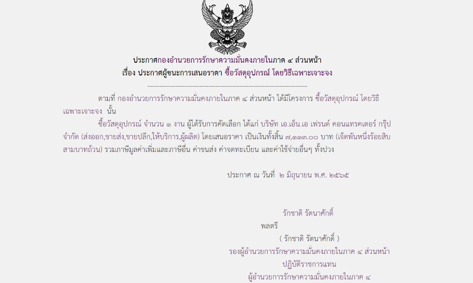 จัดซื้อ จัดจ้างประกาศผู้ชนะการเสนอราคา ประกาศผู้ชนะการเสนอราคา ซื้อวัสดุอุปกรณ์ โดยวิธีเฉพาะเจาะจง June 16, 2022 528 Share Facebook Twitter Google+ Telegram LINE