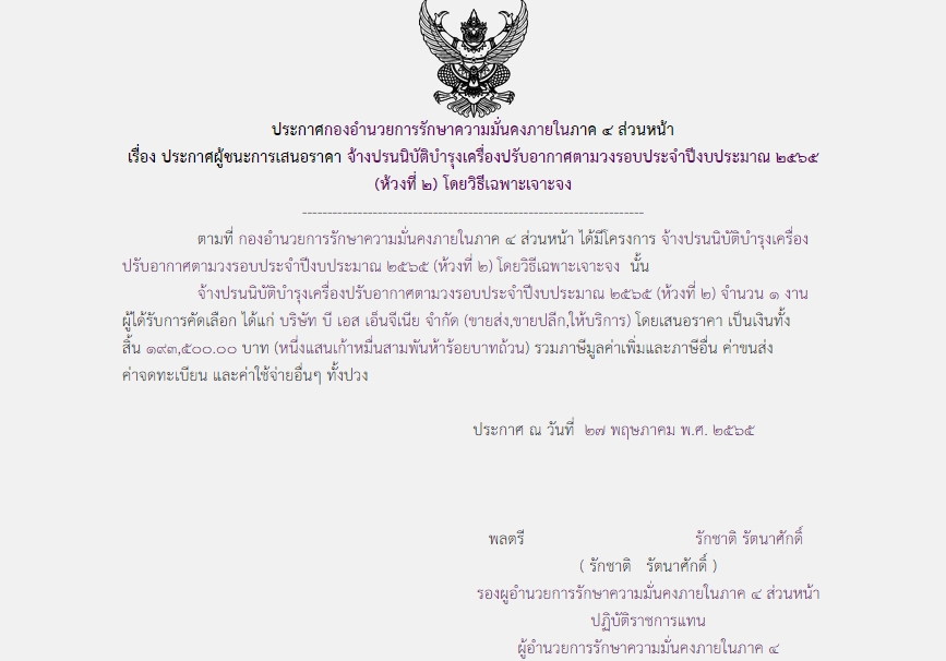 จัดซื้อ จัดจ้างประกาศผู้ชนะการเสนอราคา ประกาศผู้ชนะการเสนอราคา จ้างปรนนิบัติบำรุงเครื่องปรับอากาศตามวงรอบประจำปีงบประมาณ ๒๕๖๕ (ห้วงที่ ๒) โดยวิธีเฉพาะเจาะจง June 17, 2022 471 Share Facebook Twitter Google+ Telegram LINE