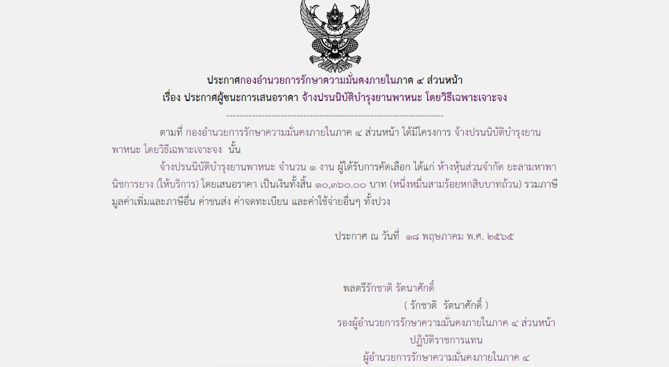 จัดซื้อ จัดจ้างประกาศผู้ชนะการเสนอราคา ประกาศผู้ชนะการเสนอราคา จ้างปรนนิบัติบำรุงยานพาหนะ โดยวิธีเฉพาะเจาะจง June 19, 2022 467 Share Facebook Twitter Google+ Telegram LINE