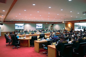 ทั้งนี้ ทางคณะฯ ได้ร่วมรับฟังการบรรยายสรุปงานด้านความมั่นคงและด้านการพัฒนาในการขับเคลื่อนแก้ไขปัญหาความไม่สงบในพื้นที่ พร้อมทั้งได้แลกเปลี่ยนเรียนรู้และหารือถึงความคืบหน้าเหตุการณที่เกิดขึ้นในพื้นที่ ทั้งภัยคุกคามต่าง ๆ ปัญหาแรงงานต่างด้าวหลบหนีเข้าเมืองผิดกฎหมาย ปัญหายาเสพติด ปัญหาการลักลอบนำสิ่งของผิดกฎหมายเข้าประเทศตามแนวชายแดน ร่วมถึงติดตามความคืบหน้าการพูดคุยเพื่อสันติสุข,โครงการมัสยิดสานใจสู่สันติ,โครงการ 1 ข้าราชการ 1 ครอบครัว และโครงการต่าง ๆ ในการช่วยเหลือ “โอรังอัสลี” ที่ได้ดำเนินการออกบัตรประจำตัวประชาชนซึ่งปัจจุบันออกบัตรฯ แล้ว 40 คน รวมทั้งส่งเสริมการประกอบอาชีพทางเกษตรอีกด้วย นอกจากนี้ทางคณะฯ ได้เน้นย้ำให้ทุกส่วนที่เกี่ยวข้องร่วมกันส่งเสริมแนะแนวแก่เยาวชนให้มีความรู้ด้านการอาชีพอาชีพเพื่อให้มีคุณภาพชีวิที่ดี