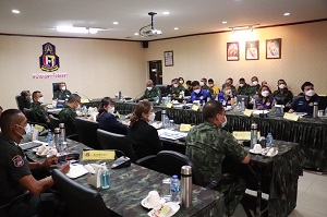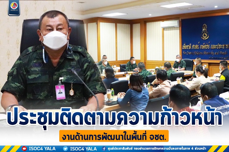 เมื่อวันที่ 23 มิถุนายน 2565 เวลา 09.00 น. ณ ห้องประชุมพรานไพร หน่วยเฉพาะกิจกรมทหารพรานที่ 43 ค่ายอิงคยุทธบริหาร อำเภอหนองจิก จังหวัดปัตตานี พลตรี เฉลิมพล จินารัตน์ ผู้อำนวยการสำนักส่วนพัฒนายุทธศาสตร์ กองอำนวยการรักษาความมั่นคงภายในภาค 4 ส่วนหน้า เป็นประธานการประชุมติดตามความก้าวหน้าของคณะทำงานประสานงานเพื่อสร้างความร่วมมือในการขับเคลื่อน และบูรณาการงานด้านการพัฒนาในระดับจังหวัด ของกองอำนวยการรักษาความมั่นคงภายในภาค 4 ส่วนหน้า ปี 2565 (ไตรมาส 3 ) ผ่านกลไกสภาสันติสุขตำบลในพื้นที่ของจังหวัดปัตตานี