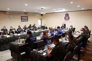 จากนั้น เวลา 13.30 น. ผู้อำนวยการส่วนพัฒนายุทธศาสตร์ กองอำนวยการรักษาความมั่นคงภายในภาค 4 ส่วนหน้า และคณะ ได้เดินไปยังหน่วยเฉพาะกิจสงขลา ร่วมประชุม ณ ห้องประชุมหน่วยเฉพาะกิจสงขลา เพื่อติดตามความกว้าวหน้าของคณะทำงานประสานงานเพื่อสร้างความร่วมมือในการขับเคลื่อน และบูรณาการงานด้านการพัฒนาในระดับจังหวัด ชายแดนภาคใต้ ที่ผ่านการขับเคลื่อนโดยสภาประชาธิปไตยตำบล และติดตามความคืบหน้าของโครงการต่างๆ โดยเฉพาะโครงการตำบลมั่นคง มั่งคั่งยั่งยืน ที่ลงสู่หมู่บ้านชุมชนในพื้นที่ 4 อำเภอของจังหวัดสงขลา โดยในที่ประชุมได้การรายงานความก้าวหน้า และมีการพูดคุยเสนอแนะปัญหาข้อขัดข้อง ร่วมเเลกเปลี่ยนความคิดเห็น เพื่อติดตามการขับเคลื่อนงานโครงการต่างๆให้เป็นรูปธรรม และเป็นไปตามความต้องการของประชาชน และประชาชนได้รับประโยนช์สูงสุดจากโครงการต่างๆที่ลงสู่หมู่บ้านชุมชนอย่างแท้จริง โดยมีคณะทำงาน จากส่วนราชการระดับจังหวัด, ผู้แทนจาก ศอ.บต., ทหาร, และฝ่ายปกครองในพื้นที่ เข้าร่วมประชุมในครั้งนี้