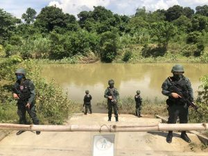 กองพันทหารราบเชิงรุกที่ 1 จัดกำลังพล ร่วมกับ ตำรวจตรวจคนเข้าเมือง, ตำรวจตระเวนชายแดน, อาสาสมัครประจำพื้นที่ บูรณาการกำลังและเครื่องมือที่มีอยู่ในการสกัดกั้นตามแนวชายแดน ในพื้นที่ตามแนวแม่น้ำโก-ลก อำเภอแว้ง จังหวัดนราธิวาส