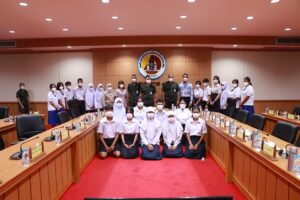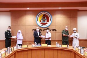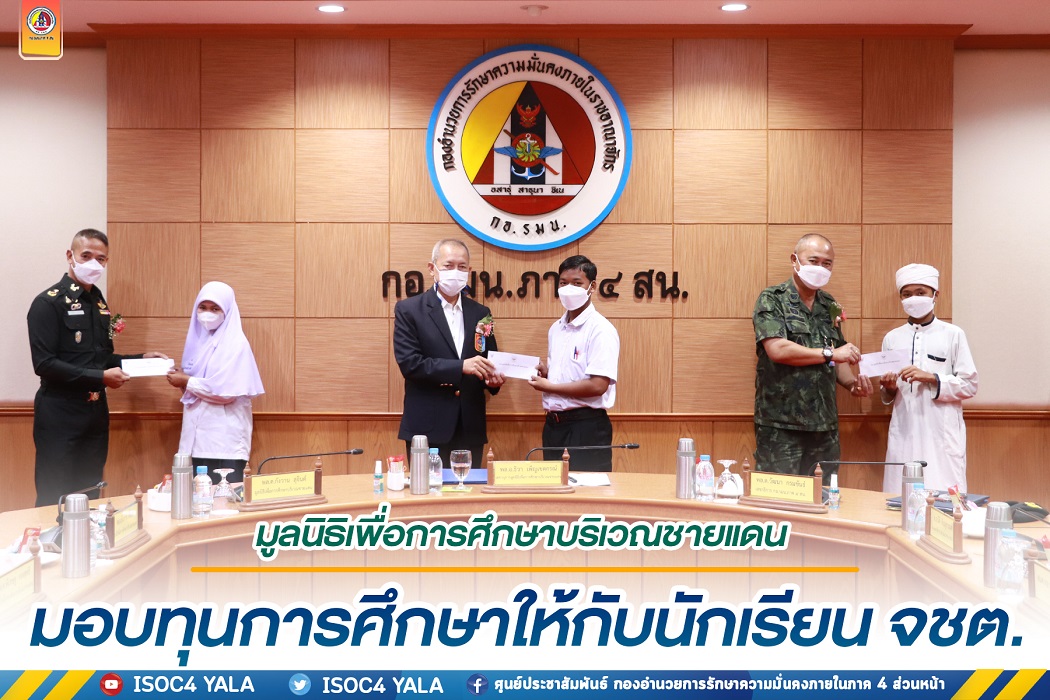 วันที่ 24 มิถุนายน 2565 พลเอกธิวา เพ็ญเขตกรณ์ เลขานุการประธานมูลนิธิเพื่อการศึกษาบริเวณชายแดน ร่วมกับ พลตรีกังวาน สุจินต์ ผู้อำนวยการสำนักปฏิบัติการเพื่อความมั่นคงกรมกิจการชายแดนทหาร ผู้แทนกองบัญชาการกองทัพไทย ร่วมมอบทุนการศึกษาให้กับนักเรียนซึ่งกําลังศึกษาอยู่ในระดับมัธยมศึกษาของโรงเรียนต่างๆ ในพื้นที่อำเภอตามแนวชายแดน สำหรับในพื้นที่จังหวัดชายแดนภาคใต้ ปี 2565 กองอำนวยการรักษาความมั่นคงภายในภาค 4 ส่วนหน้า มอบหมายให้หน่วยในพื้นที่ทำการสำรวจคัดเลือกเยาวชนที่เรียนดีเป็นคนดี มีฐานะยากจน จำนวน 48 ทุน โดยมี พลตรีวัฒนา กรมขันธ์ เลขาธิการกองอำนวยการรักษาความมั่นคงภายในภาค 4 ส่วนหน้า คณะครู นักเรียน ผู้ปกครอง ร่วมในครั้งนี้