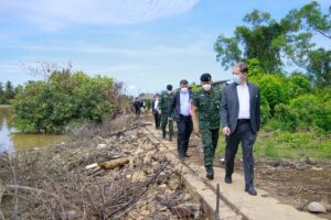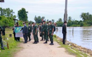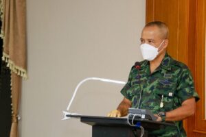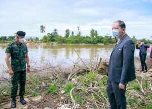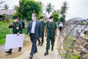 วันนี้ (25 มิถุนายน 2565) ณ ห้องประชุม หน่วยเฉพาะกิจนราธิวาส ค่ายกัลยาณิวัฒนา อำเภอเมืองนราธิวาส พลตรีอุทิศ อนันตนานนท์ รองผู้อำนวยการรักษาความมั่นคงภายในภาค 4 ส่วนหน้า ให้การต้อนรับ นายฉัตรชัย บางชวด รองเลขาธิการสภาความมั่นคงแห่งชาติในโอกาสเดินทางมาติดตามความคืบหน้าในการดำเนินการตามโครงการเพิ่มประสิทธิภาพการจัดระเบียบพื้นที่ พร้อมทั้งรับทราบปัญหาข้อขัดข้อง และกำหนดแนวทางในการแก้ปัญหาอย่างต่อเนื่อง โดยมี ผู้บังคับหน่วยเฉพาะกิจนราธิวาส และส่วนที่เกี่ยวข้องร่วมประชุม และติดตามคณะ ก่อนจะลงพื้นที่ไปยังบริเวณแม่น้ำโก-ลก บ้านศรีพงัน ตำบลเกาะสะท้อน อำเภอตากใบ จังหวัดนราธิวาส เพื่อสำรวจจุดก่อสร้างเขื่อนป้องกันตลิ่ง และตรวจพื้นที่ติดตั้งกล้อง CCTV หรือรั้วความมั่นคงอิเล็กทรอนิกส์ รวม 4 จุด ซึ่งปัจจุปันอยู่ระหว่างการดำเนินการ