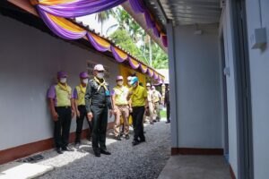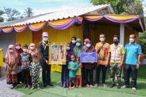 วันนี้ (26 มิ.ย.65) เวลา 10.20 น. พลตรีอุทิศ อนันตนานนท์ รองผู้อำนวยการรักษาความมั่นคงภายในภาค 4 ส่วนหน้า / หัวหน้าจิตอาสา 904 ภาค 4 และคณะจิตอาสา 904 จังหวัดปัตตานี ลงพื้นที่ส่งมอบบ้านให้แก่ นางมีเนาะ สาเมาะ บ้านเลขที่ 9849 หมู่ที่ 4 บ้านนาค้อใต้ ตำบลมะกรูด อำเภอโคกโพธิ์ จังหวัดปัตตานี ตามโครงการ “บ้านปันสุข” ยกระดับคุณภาพชีวิต สร้างขวัญและกำลังใจ เพิ่มพูนความสุขแก่ประชาชน พร้อมทั้งได้มอบพระบรมฉายาลักษณ์ พระบาทสมเด็จพระเจ้าอยู่หัวฯ และสมเด็จพระนางเจ้า พระบรมราชินี พร้อมกันนี้ ได้มอบชุดเครื่องนอน เครื่องใช้ไฟฟ้า เครื่องอุปโภคบริโภคแก่ครอบครัว ก่อนมอบป้ายชื่อบ้าน โดยมี พลตรี คมกฤช รัตนฉายา ผู้บังคับหน่วยเฉพาะกิจปัตตานี , พันเอก ทวีพร คณะทอง ผู้บังคับหน่วยเฉพาะกิจกรมทหารพรานที่ 43 ,นายกเทศมนตรีส่วนตำบล , กำนัน ผู้ใหญ่บ้าน , หัวหน้าส่วนราชการ กลุ่มมวลชนในพื้นที่ ร่วมให้การต้อนรับ