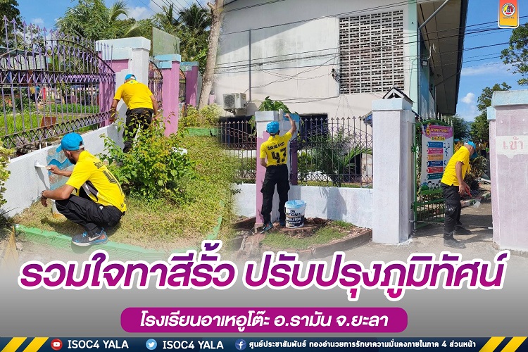 หน่วยเฉพาะกิจกรมทหารพรานที่ 41 จัดกำลัง ชุดปฏิบัติการเสริมสร้างความเข้าใจ กองร้อยทหารพรานที่ 4107 ร่วมกับ คณะครู, ผู้ปกครอง, ผู้ใหญ่บ้าน ลงพื้นที่โรงเรียนอาเหอูโต๊ะ บ้านยะต๊ะ หมู่ที่ 1 ตำบลยะต๊ะ อำเภอรามัน จังหวัดยะลา รวมกิจกรรมจิตอาสาบำเพ็ญสาธารณะประโยชน์ ปรับปรุงภูมิทัศน์โรงเรียน โดยการทาสีกำแพงรั้ว ป้ายของโรงเรียนฯ ซึ่งสีเดิมมีสภาพเก่า ซีด ไม่สวยงาม เนื่องจากผ่านการใช้งานมานาน และทำความสะอาด พัฒนาปรับปรุงภูมิทัศน์ภายในโรงเรียน และพื้นที่เขตสุขาภิบาลบริเวณโดยรอบให้สะอาด เพื่อคืนความสดใสให้กับโรงเรียนและสร้างภูมิทัศน์ที่สวยงาม