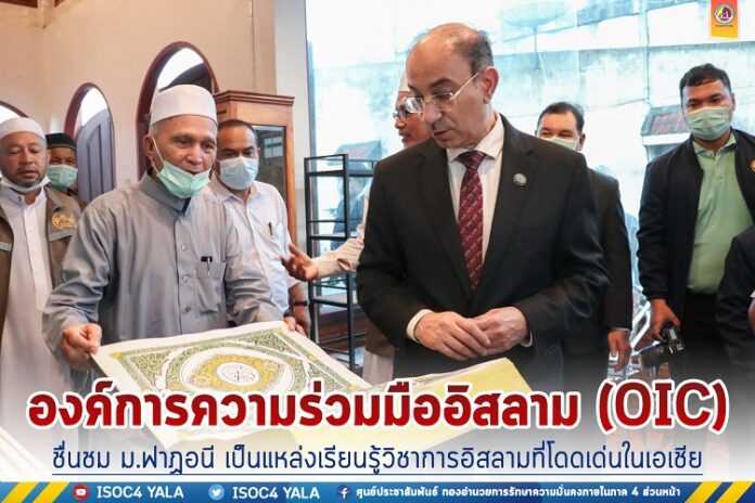 วั นนี้ 29 มิถุนายน 2565 เวลา 13.30 น. ณ มหาวิทยาลัยฟาฏอนี ตำบลเขาตูม อำเภอยะรัง จังหวัดปัตตานี Mr.Yousef Mohammed S.Aldobeay ผู้ช่วยเลขาธิการองค์การความร่วมมืออิสลาม (OIC) , Mr. El Habib Bourane ผู้อำนวยการกองชุมชนและชนกลุ่มน้อยของมุสลิม , Ms. Ibrahim Patou เจ้าหน้าที่ฝ่ายการเมืองระดับชำนาญการ ตลอดจนผู้แทนจากกระทรวงการต่างประเทศ และคณะ เดินทางเยือนเพื่อพบปะแลกเปลี่ยนความคิดเห็นกับนักศึกษาจากนานาชาติ ที่เดินทางมาศึกษาในจังหวัดชายแดนภาคใต้ และผู้แทนชมรมศิษย์เก่าจากประเทศซาอุดีอาระเบีย พร้อมรับฟังบทบาทของมหาวิทยาลัยฯกับการพัฒนาคุณภาพชีวิตประชาชนและการสร้างสังคมพหุวัฒนธรรมที่เข้มแข็งเพื่อให้ทุกศาสนาอยู่ร่วมกันอย่างสันติสุข โดยมี นายลุตฟี จะปะกียา อธิการบดีมหาวิทยาลัยฟาฏอนี เป็นประธานในการต้อนรับพร้อมบรรยายสรุป พร้อมด้วย พลเรือตรี สมเกียรติ ผลประยูร เลขาธิการศูนย์อำนวยการบริหารจังหวัดชายแดนภาคใต้ , รองอธิการบดี คณาจารย์และนักศึกษาร่วมให้การต้อนรับ