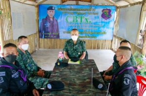 จากนั้น รองแม่ทัพภาคที่ 4 และคณะ ลงพื้นที่ไปยังชุมชนบำบัด CBTx ต.ปะเสยะวอ อ.สายบุรี เพื่อติดตามโครงการบำบัดฟื้นฟูผู้ใช้ยาเสพติด CBTx พร้อมมอบเครื่องบริโภคให้แก่กำลังพล โดยมี ผู้บังคับกองร้อยทหารพราน สนับสนุนหน่วยเฉพาะกิจกรมทหารพราน 44 และกำลังพลให้การต้อนรับ สำหรับโครงการชุมชนบำบัด CBTx เป็นการบําบัดรักษาผู้เสพยาเสพติดโดยการมีส่วนร่วมของชุมชน มีรูปแบบการรักษาในเชิงบูรณาการโดยเฉพาะต่อผู้ใช้ยาเสพติดและติดยาในชุมชนเพื่อให้เกิดการรักษาอย่างต่อเนื่อง ตั้งแต่การรักษาในระยะเริ่มต้นถึงการรักษาแบบการถอนพิษยาและสร้างความเสถียรภาพ จนถึงการติดตามผลการรักษาและการคืนผู้ป่วยสู่สังคม รวมถึงการบำบัดด้วยยาอย่างต่อเนื่อง ทั้งนี้มีผู้เข้าร่วมโครงการฯ จำนวน 15 คน เป็นเยาวชนในพื้นที่ ต.ปะเสยะวอ ระยะเวลาการบำบัด 45 วัน ซึ่งมีการฝึกอาชีพให้ผู้เข้าร่วมโครงการ ทางด้านกิจกรรมศูนย์เรียนรู้เศรษฐกิจเพียง ด้วยการปลูกผักสวนครัว การเลี้ยงเป็ด เลี้ยงไก่ เพื่อให้ผู้เข้าร่วมโครงการฯ สามารถนำความรู้ที่ได้รับ ไปกระกอบอาชีพได้ ตลอดจนสนับสนุนครอบครัวและชุมชนของผู้ป่วยอย่างเข้มแข็งในการแก้ปัญหายาเสพติดและเครื่องดื่มแอลกอฮอล์ เพื่อให้เกิดผลสัมฤทธิ์ในระยะยาวต่อไป