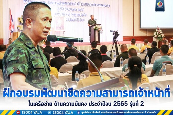 วันนี้ (1 กรกฎาคม 2565) เวลา 09.30 น. พลตรี ปราโมทย์ พรหมอินทร์ รองแม่ทัพน้อยที่ 4 / รองผู้อำนวยการรักษาความมั่นคงภายในภาค 4 ส่วนหน้า เป็นประธานเปิดการฝึกอบรมพัฒนาขีดความสามารถเจ้าหน้าที่ในเครือข่าย ด้านความมั่นคง ประจำปีงบประมาณ 2565 รุ่นที่ 2 โดยมี พันเอก ทศพล ลึกลับพนาวัลย์ ผู้อำนวยการ สำนักสารสนเทศ กองอำนวยการรักษาความมั่นคงภานในถาค 4 ส่วนหน้า ,พันเอก รัตติพล ตันยา รองหัวหน้าศูนย์ประสานงานสารนิเทศ ศูนย์ปฏิบัติการกองทัพบก(2) ตลอดจนกำลังพลและเจ้าหน้าที่ในพื้นที่ 3 จังหวัด(ยะลา ปัตตานี และนราธิวาส) เข้าร่วมจำนวน 66 คน ณ โรงแรมบีพี สมิหลา บีช โฮเทล แอนท์ รีสอร์ท ต.บ่อยาง อ.เมือง จ.สงขลา
